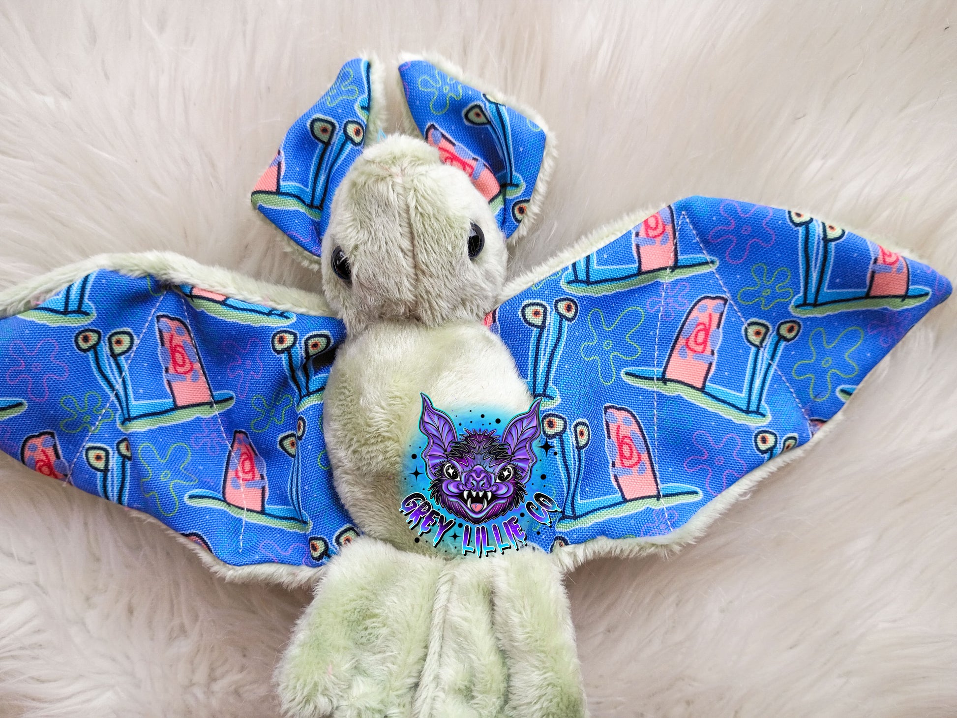 Regular bat plushies are approximately 6in tall with an 11in wingspan