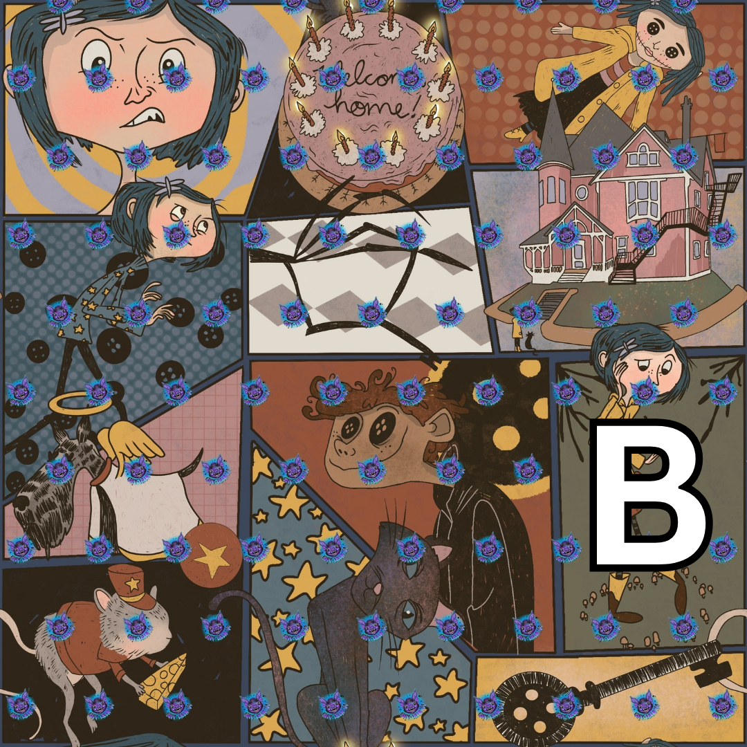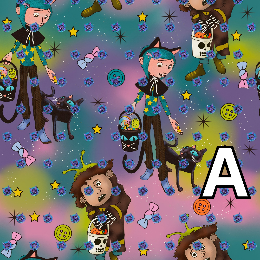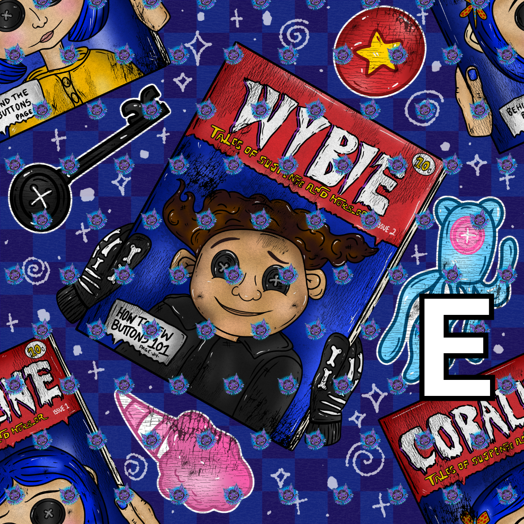 You will be choosing the design used for the dolls skirt and top/body. Coraline dolls will have black button eyes and blue hair. Hair style will be a mystery.