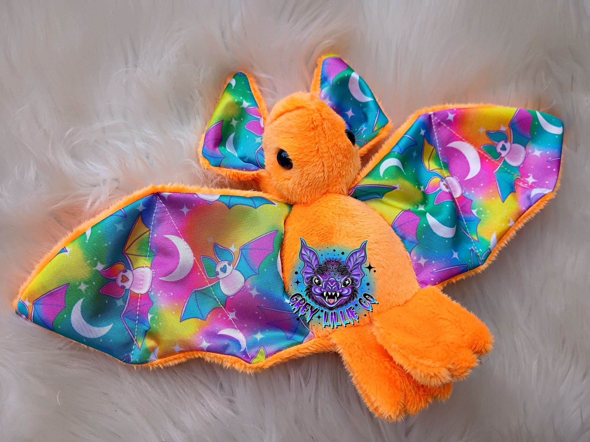 Regular bat plushies are approximately 6in tall with an 11in wingspan